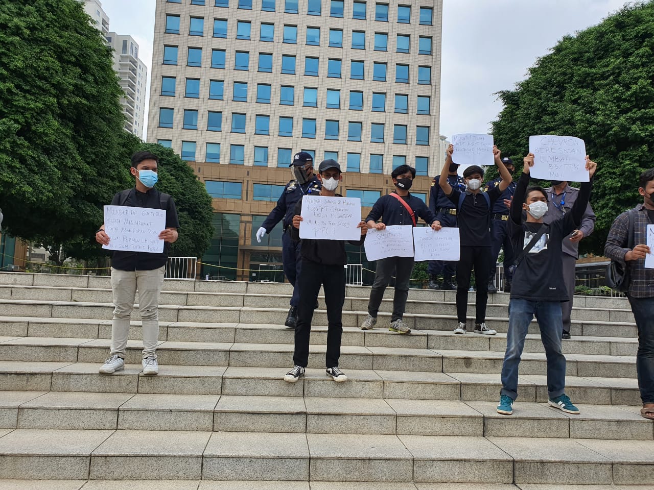 JAKARTA – Puluhan massa yang menamakan dirinya Aliansi Masyarakat Sipil Peduli Energi dan Lingkungan, Rabu (2/6/2021), mendatangi kantor PT Chevron Pacific Indonesia (CPI), yang terletak di kawasan Senayan Jakarta.