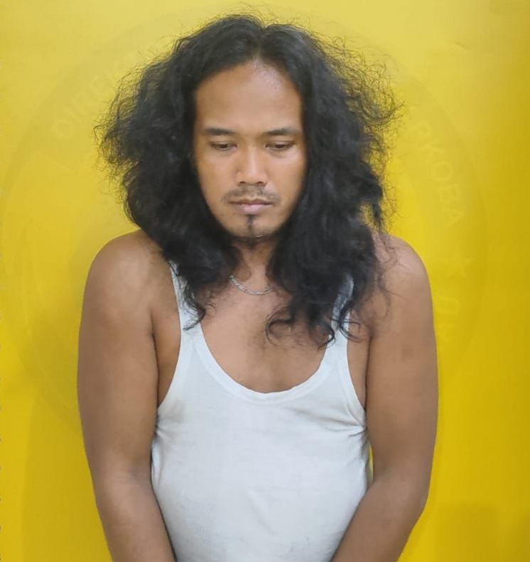 Setelah diamankan, tersangka Kat yang sebelumnya gondrong pun kini telah menjadi botak karena rambutnya dibotakin oleh petugas. (dad)