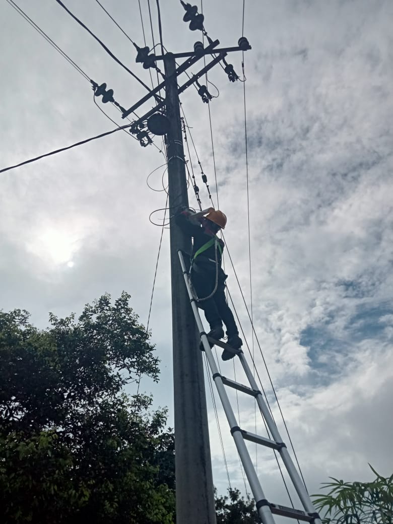 PLN Icon Plus SBU Regional Sumatera Bagian Tengah menurunkan beberapa personel untuk melakukan pekerjaan pemeliharaan jaringan kabel fiber optik.