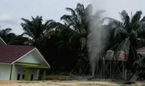 “(Saat) kita lagi membuat sumur bor. Di kedalaman 119 meter, tiba-tiba menyembur (gas),” katanya seraya menambahkan, semburan gas menimbulkan suara yang cukup kencang.