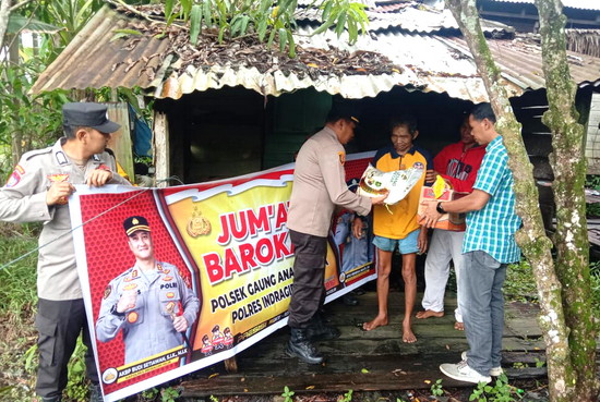 INHIL-Kepolisian Sektor (Polsek) Gaung Anak Serka, Polres Inhil, Polda Riau, memberikan berkah rezeki pada Jum’at Barokah kepada warga di kelurahan Teluk, kecamatan Gaung Anak Serka, Jum’at (5/1/2024).