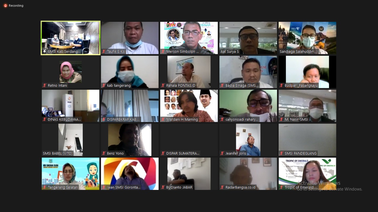 Webinar yang diikuti para pelaku wisata di Indonesia, pengurus SMSI Pusat, Provinsi, dan Kabupaten/Kota se Indonesia diberi pengantar Ketua Umum SMSI Pusat Firdaus. Menurut Firdaus, SMSI memiliki jaringan 1.103 pemilik media siber di 33 provinsi. Dengan banyaknya pemilik media siber yang bergabung, maka SMSI sangat layak menjadi mitrakerja Kementerian Pariwisata dan Ekonomi Kreatif.