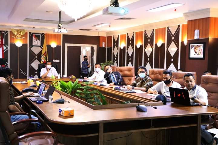 PEKANBARU – Walikota Pekanbaru Dr. H. Firdaus, S.T, M.T mengikuti Rapat Ekspose Perencanaan Drainase Komplek Perkantoran Tenayan Raya oleh Dinas PUPR Pekanbaru, di Lantai V Ruang Kerja Walikota Komplek Perkantoran Tenayan Raya, Kamis (4/3/2021).