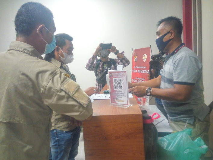 Kepala Suku Arimbi, Mattheus Simamora didampingi jajarannya menyerahkan langsung laporannya di ruang Direktorat Reserse Kriminal Khusus (Ditreskrimsus) Mapolda Riau, dan diterima oleh petugas piket Feri Andos SP SH.