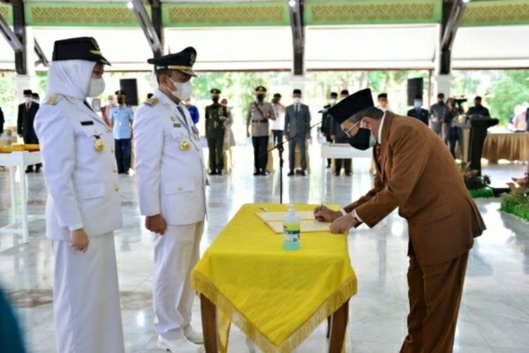 PEKANBARU –  Gubernur Riau Drs H Syamsuar MSi resmi melantik dan memimpin pengambilan sumpah jabatan Rezyta Meylani sebagai Bupati Inhu (Indragiri Hulu), bersamaan dengan pelantikan Junaidi Rahmat sebagai Wakil Bupati (Wabup) Inhu. Pasangan itu dinyatakan sebagai pemenang Pilkada Inhu 2020.