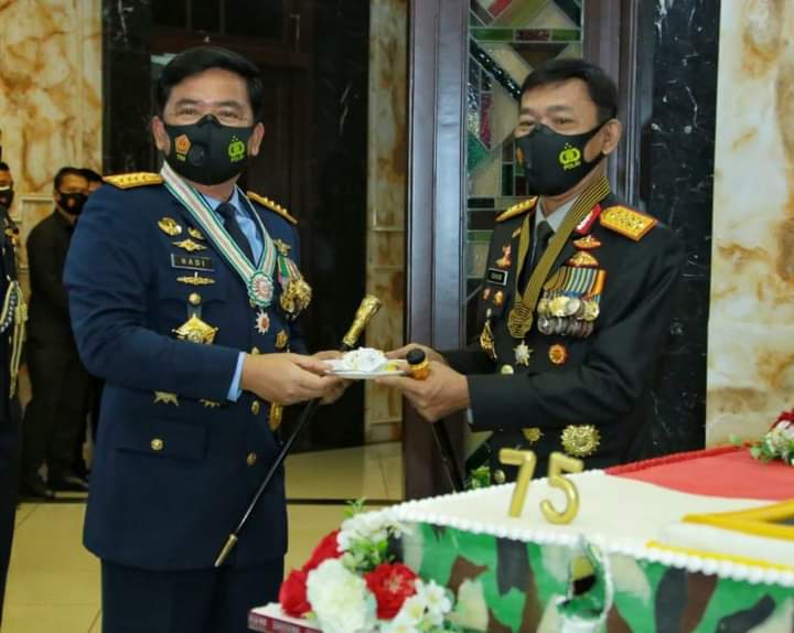 JAKARTA PUSAT (PRC) –Puspen TNI. Panglima TNI Marsekal TNI Hadi Tjahjanto S.I.P., menerima kejutan dari Kapolri Jenderal Polisi Drs. Idham Azis, M.Si. di Hari Ulang Tahun (HUT) Ke-75 TNI dengan berkunjung langsung ke Subden Merdeka Barat Denma Mabes TNI, Merdeka Barat, Jakarta Pusat, Senin (5/10/2020).