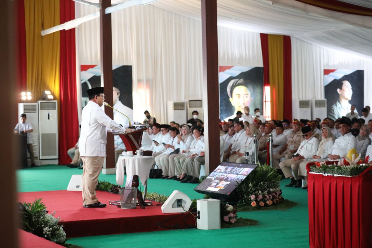 “Mungkin ada di ruangan ini yang kurang dukung saya pada saat itu, bener? kok suaranya kecil, bener nggk. Sekarang tidak, tapi tidak papa, itulah partai kita, boleh berbeda pendapat, boleh mengkritik tidak ada masalah, tapi ketika keputusan sudah diambil, semua patuh, semua kompak” jelas Prabowo.