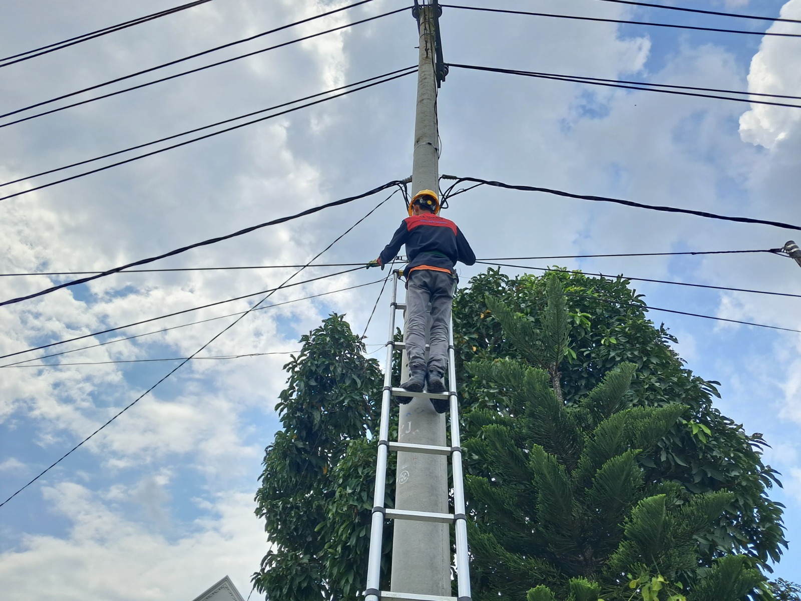 PLN Icon Plus SBU Regional Sumatera Bagian Tengah menurunkan beberapa personel untuk melakukan pekerjaan pemeliharaan jaringan kabel fiber optik.