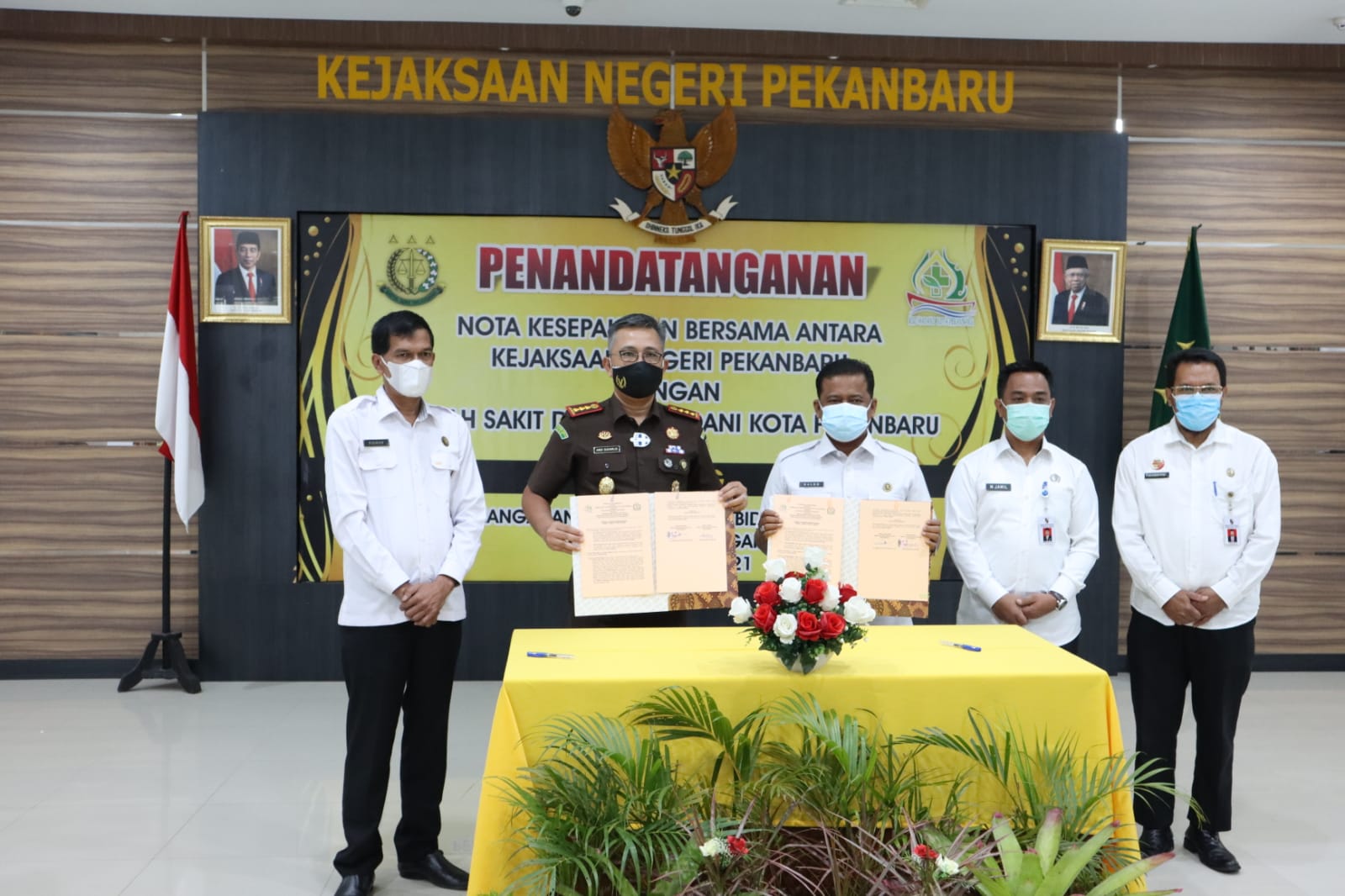 Kerjasama kedua belah pihak ditandai dengan penandatanganan Memorandum of Understanding (MoU) atau nota kesepahaman tentang Penangangan Masalah Hukum Bidang  Perdata dan Tata Usaha Negara oleh Direktur RSD Madani dr Arnaldo Eka Putra Sp.PD dan Kajari Pekanbaru Andi Suharlis SH.MH, Rabu (7/4/2021).