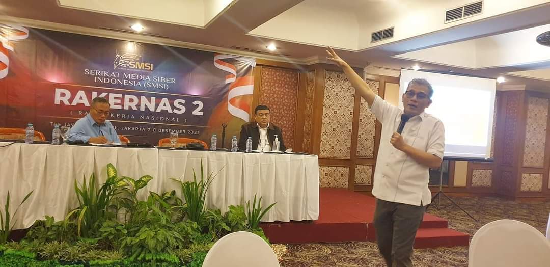 Pendapat itu dilontarkan oleh Budiman Sudjatmiko, inisiator Bukit Algoritma, saat menjadi pembicara tentang masa depan dan revolusi teknologi media di hadapan ratusan peserta Rapat Kerja Nasional (Rakernas) II Serikat Media Siber Indonesia (SMSI), di Hotel The Jayakarta, Jakarta, Rabu (8/12/2021).