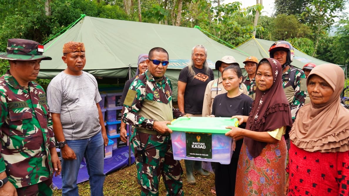 CIANJUR— Bantuan lanjutan dari Kepala Staf TNI Angkatan Darat (KASAD) Jenderal TNI Dr.Dudung Abdurachman, S.E., M.M. kepada korban Gempa Bumi di Cianjur adalah bagian Peran TNI dalam memberikan bantuan dalam penanggulangan bencana.