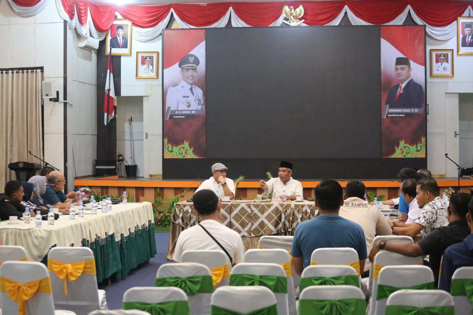 Rombongan PWI Riau yang dipimpin ketuanya, H Zulmansyah Sekedang SSos diterima Pj Bupati Kampar Kamsol dengan suasana penuh keakraban dan kekeluargaan, di Balai Bupati Kampar di Bangkinang.