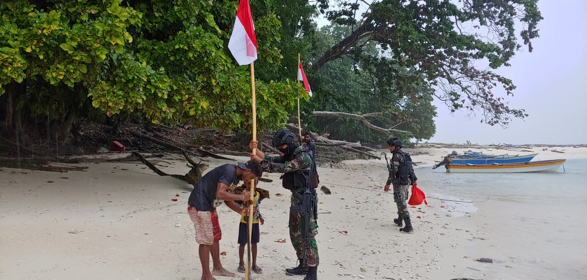 Papua (PRC) – Untuk membantu sesama dan memperingati HUT Kemerdekaan RI ke-75, Satgas Pamrahwan Yonif 754/ENK/20/3 Kostrad melewati Laut Pasifik untuk mengadakan pengobatan gratis kepada masyarakat, serta membagikan sembako dan memerah putihkan Pulau Anus. Demikian keterangan tertulis yang diberikan oleh Dansatgas Yonif 754/ENK/20/3 Kostrad Letkol Inf Dodi Nur Hidayat di Kabupaten Mimika Papua, Senin (10/08/2020).