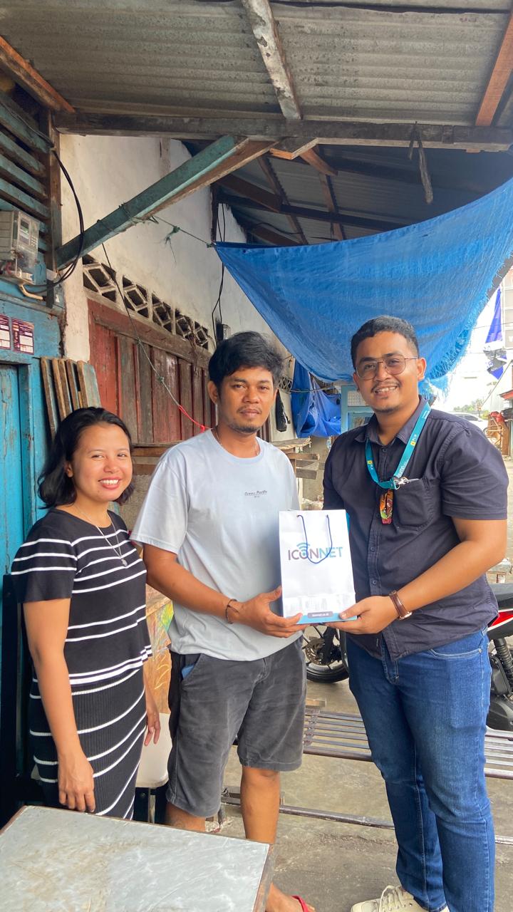 Pelanggan Iconnet dalam kunjungan ini bernama Bram Rinaldi yang beralamat di Jalan Musolla Dagang Rimbo, Kota Padang,  Provinsi Sumatera Barat (Sumbar).