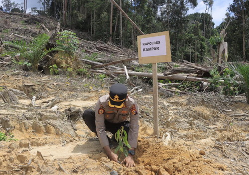 Menurut Kapolres Kampar AKBP Mihardi Mirwan, kegiatan penanaman pohon ini dilakukan Polda Riau bersama Polres Kampar