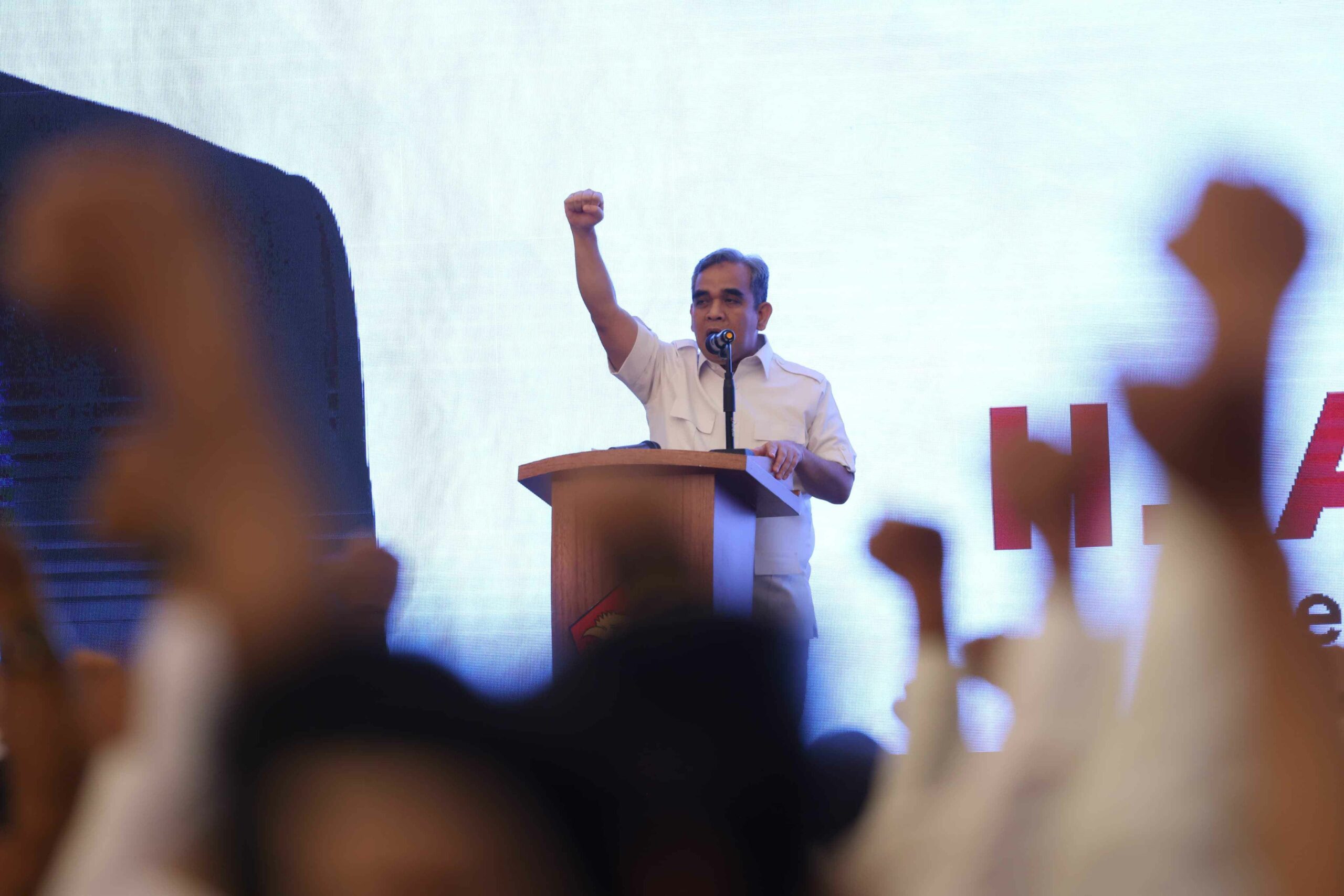 Sekjen Partai Gerindra Ahmad Muzani menghadiri konsolidasi 1700 calon anggota legislatif (caleg) se Provinsi Jawa Barat di Hotel Pullman, Bandung, Jawa Barat, Minggu (10/9). Pada kesempatan ini, Muzani meminta Caleg untuk bekerja keras memenangkan Prabowo di Jawa Barat.