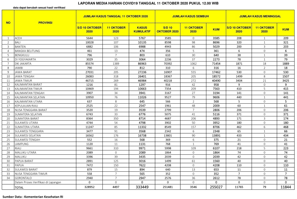 Berikut sebaran 4.497 kasus baru Corona di Indonesia, Ahad (11/10/2020):
