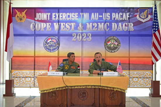 Paban III/Lat Sopsau Kolonel Pnb I Gusti Putu Setia Dharma selaku Ketua Delegasi TNI AU saat acara pembukaan Joint Exercise TNI AU-US PACAF Cope West & M2MC DAGR 2023 di gedung VIP Room Lanud Roesmin Nurjadin, Pekanbaru, menyampaikan bahwa tujuan dilakukan kegiatan tersebut guna mempererat hubungan dan kerjasama militer Indonesia dan Amerika Serikat, saat ini maupun masa yang akan datang serta menumbuhkan kesepahaman antar kedua negara.