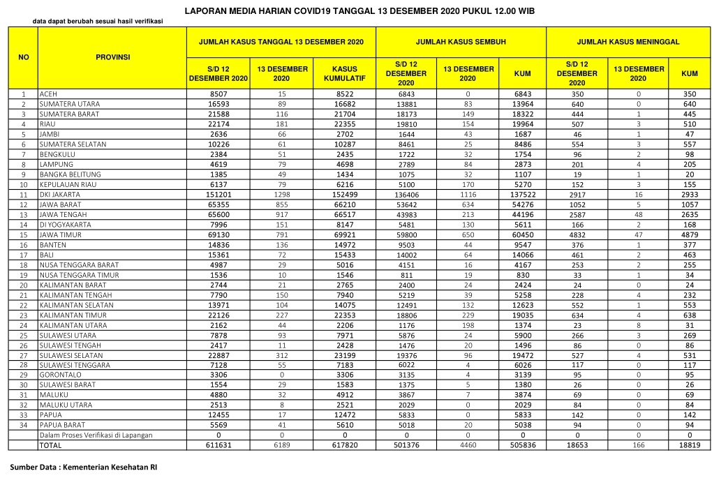 Berikut sebaran 6.189 kasus baru Corona di Indonesia, Ahad  (13/12/2020):
