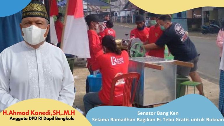BENGKULU – Menyambut bulan suci Ramadan 1442 H, Anggota DPD RI H. Ahmad Kanedi, SH, MH yang disapa Bang Ken membagikan takjil berupa es tebu murni gratis selama puasa Ramadan. Kegiatan ini merupakan salah satu upaya untuk mendorong atau memotivasi UMKM dan petani tebu lokal di masa pandemi Covid-19.