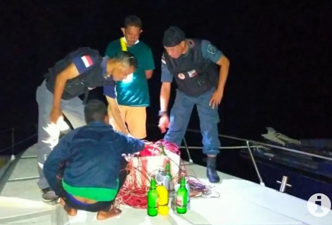 Dari para pelaku, tim menyita sejumlah barang bukti antara lain 1 perahu motor, 26 botol bom ikan yang siap digunakan, 19 detonator yang belum dirakit, 1 detonator yang sudah dirakit dengan kabel dan lampu LED,