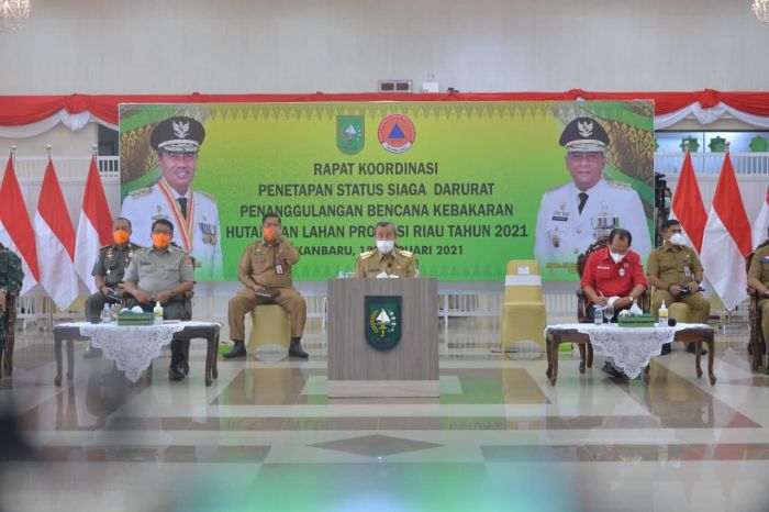 “Di tengah bencana non alam pandemi Covid-19 yang masih terjadi sekarang ini, potensi bencana lain masih mengancam di Provinsi Riau,” sebut orang nomor satu di Provinsi Riau.