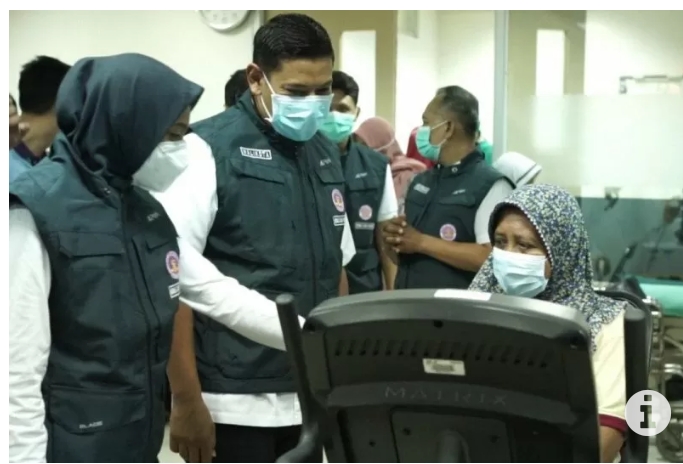 Wali Kota  Abdullah Abu Bakar yang juga didampingi Pelaksana Tugas Direktur RSUD Gambiran Kota Kediri dr Fauzan Adima melihat salah satu pasien “Home care peduli” yang sedang menjalani fisioterapi di rumah sakit itu. Perawatan di rumah sakit karena ada beberapa alat yang tidak bisa dibawa ke rumah pasien.