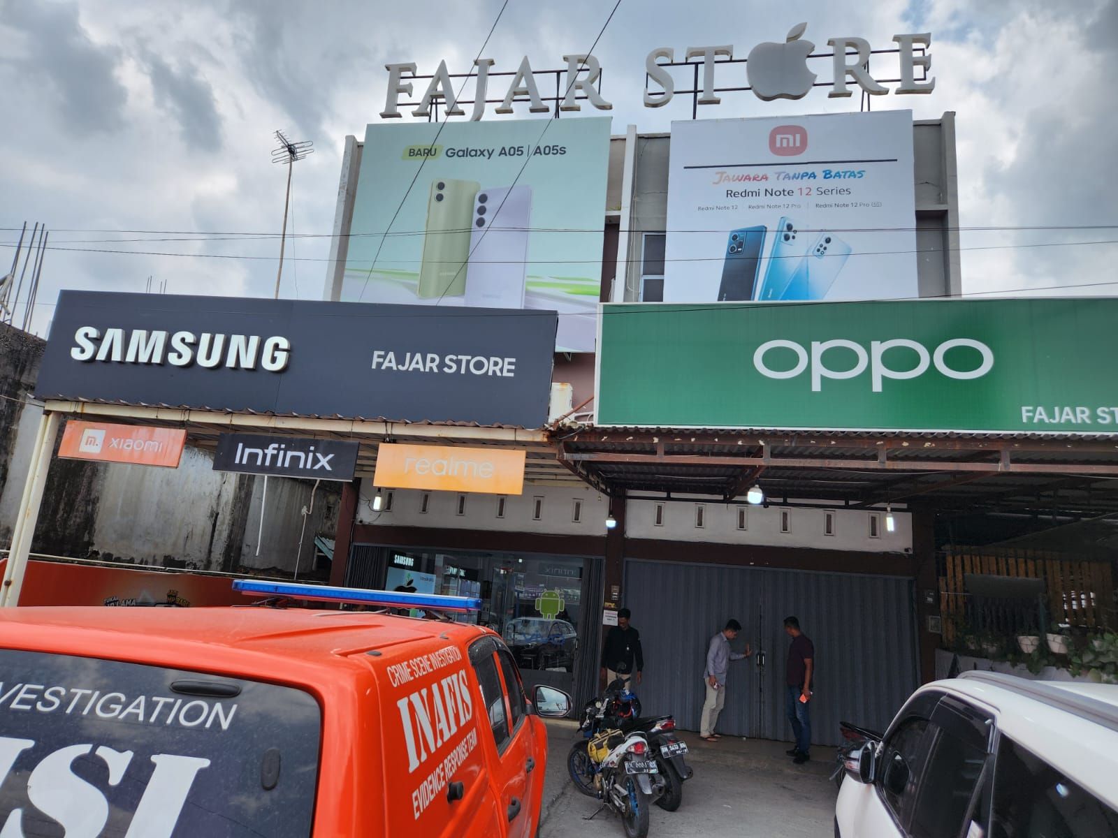 Usai berhasil mengambil puluhan unit handphone, pelaku kemudian kabur menggunakan mobil Suzuki Karimun Wagon hitam.