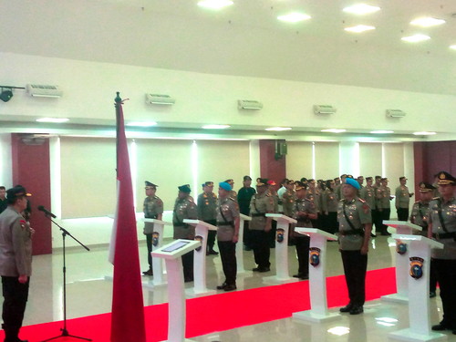 “Kenapa? Karena memang yang bersangkutan sekolah. Setelah sekolah mutasi ke Polda Riau terus mendapat jabatan baru ini. Saya kira 3 bulan padat betul tour of duty nya pak Nandang. Mudah-mudahan ini bekal bagi petinggi-petinggi Humas masa depan. Terus Kabid Propam Polda Riau menjadi Kabid Propam Polda Jawa Tengah, terus Dir Sabhara pak Faried menjadi Kepala Biro di Polda Sumbar. Jadi semua pejabat utama yang II B III menjadi II B II. Artinya, selangkah lagi mencapai II B I menjadi perwira tinggi. Begitu juga Kapolres, pemantapan semua. Kapolres Dumai menjadi Wadirlantas Polda Riau, Kapolres Kampar menjadi Wadir Samapta Polda Jawa Tengah,” ulasnya.