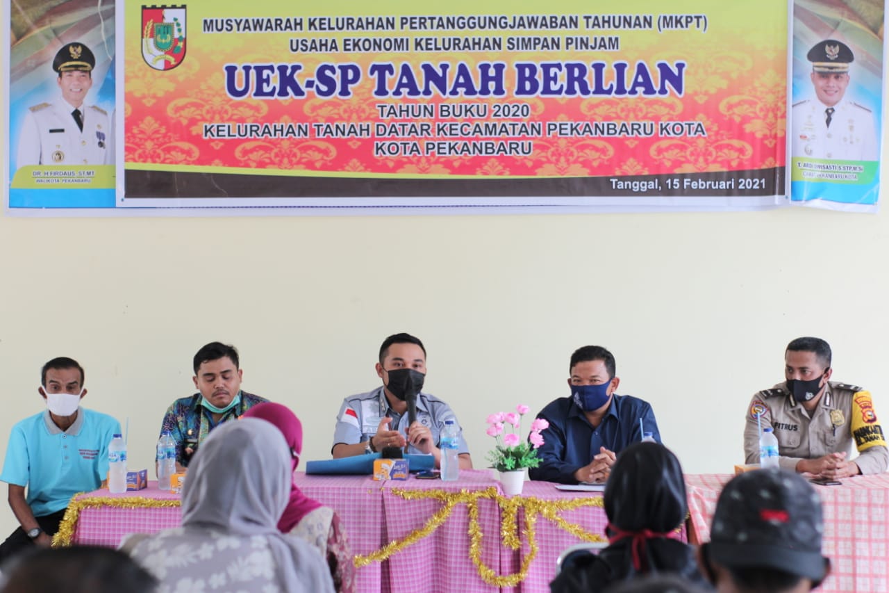 PEKANBARU – Usaha Ekonomi Kelurahan Simpan Pinjam (UEK-SP) Tanah Berlian Kelurahan Tanah Datar laksanakan Musyawarah Kelurahan Pertanggungjawaba Tahunan (MKPT). MKPT dihadiri langsung Camat Pekanbaru Kota Tengku Ardi Dwisasti, S.STP, M.Si, Kamis (18/2/2021).