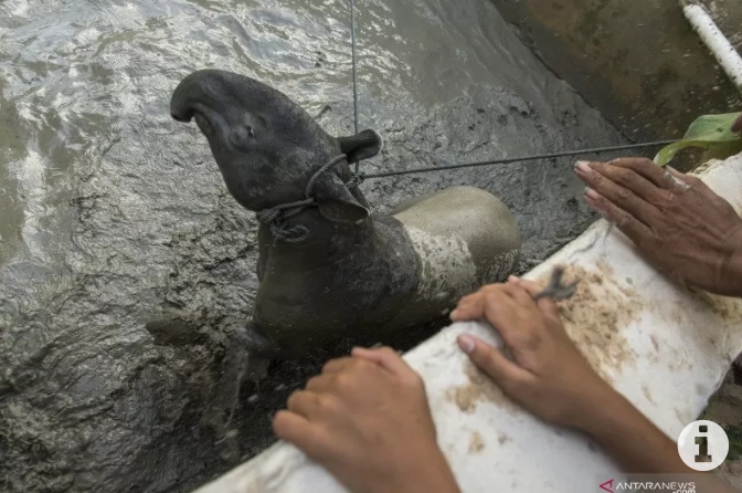 Tapir Stres Dan Terluka Setelah Dievakuasi Dari Kolam Warga Pekanbaru