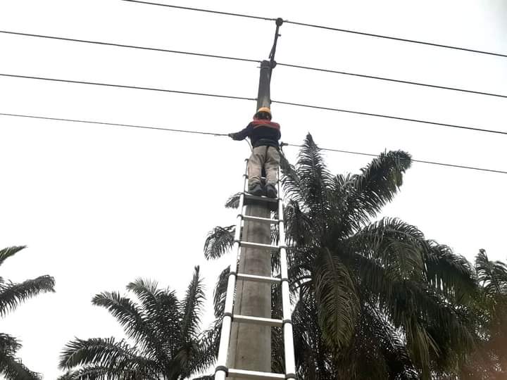 PLN Icon Plus SBU Regional Sumatera Bagian Tengah menurunkan beberapa personel untuk melakukan pekerjaan pemeliharaan jaringan kabel fiber optik.