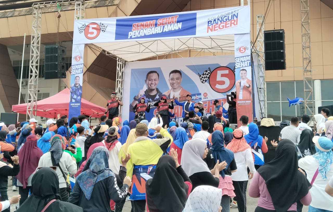 “Sungguh luar biasa acara senam sehat Pekanbaru AMAN hari ini. Kita sudah beberapa kali mengadakan acara senam sehat ini, dan antusiasme masyarakat terus meningkat. Jujur, saya terharu melihat Stadion Utama dipenuhi warga. Terima kasih atas dukungan yang semakin hari semakin berdatangan kepada pasangan AMAN, ini menjadi semangat tambahan bagi kami untuk terus merangkul masyarakat,” ungkap Agung.