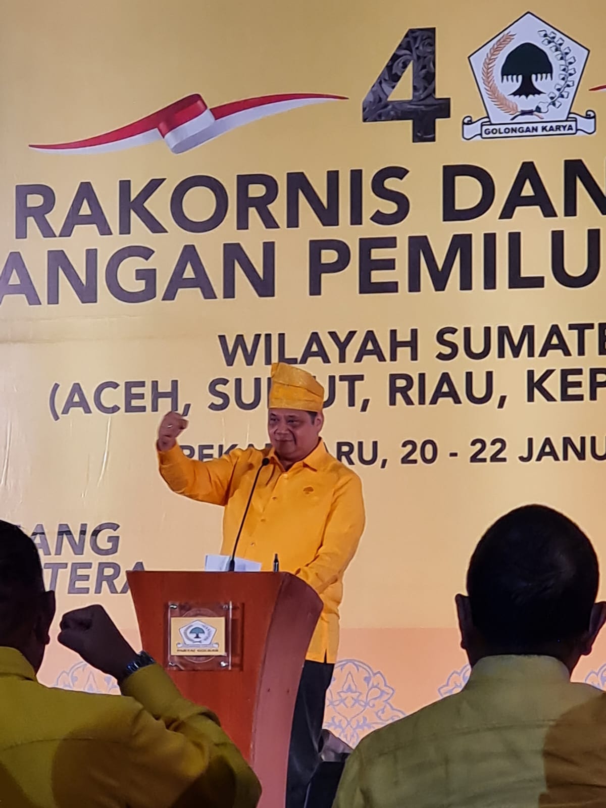 PEKANBARU – Partai Golkar pasang target besar di Pemilu Legislatif (Pileg) 2024. Khusus untuk wilayah Sumatera bagian Utara (Sumbagut), Ketua Umum DPP Partai Golkar Airlangga Hartarto menargetkan 17 kader duduk di kursi Parlemen Senayan.