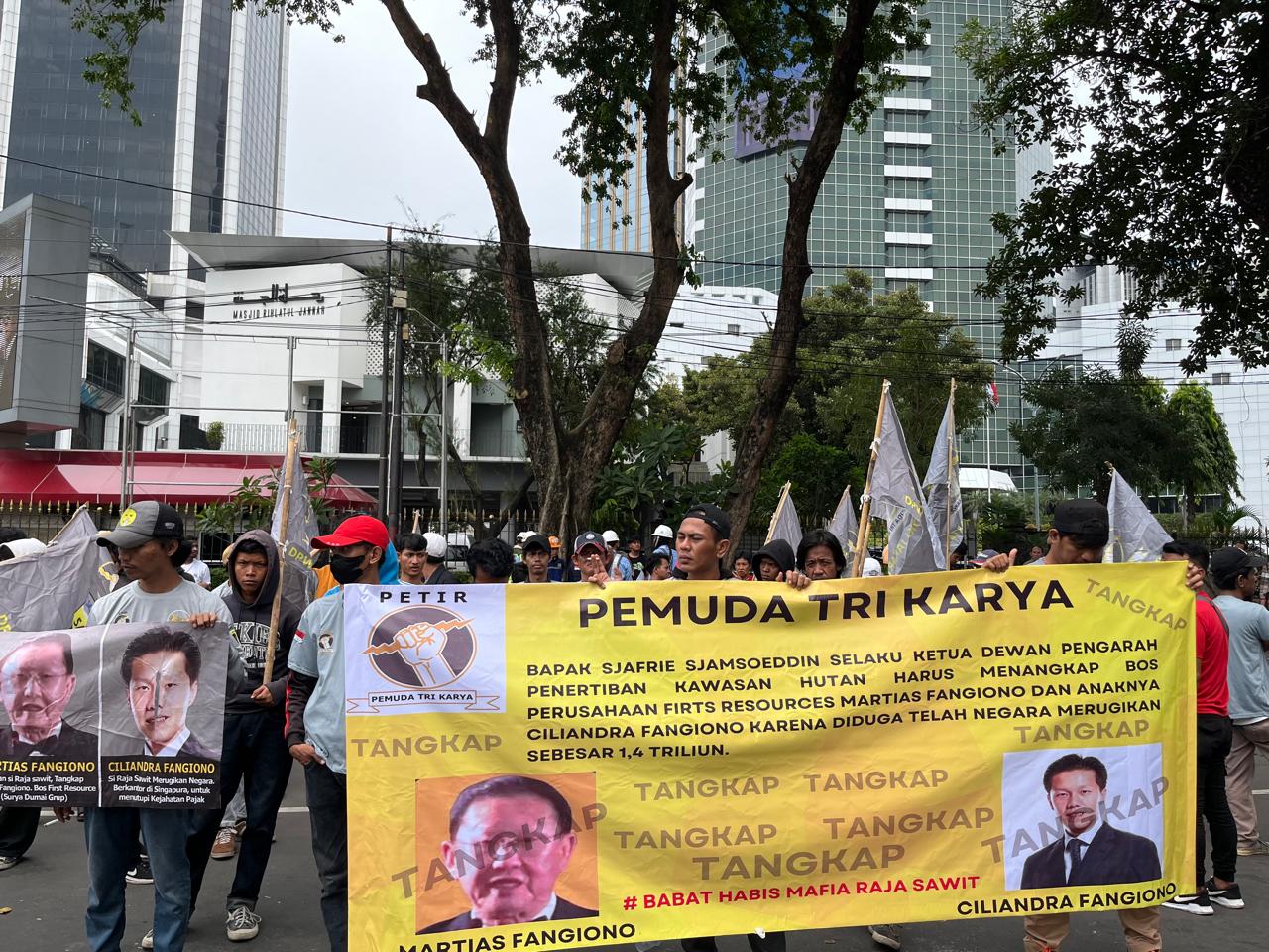 Pertama, meminta Presiden RI Prabowo Subianto memerintahkan Menteri Pertahanan selaku Ketua Dewan pengarah Satgas Penertiban Kawasan Hutan sesuai dengan Perpres Nomor 5 Tahun 2025, untuk segera menindaklanjuti kasus perusahaan First Resources Group milik Martias Fangiono dan anaknya Ciliandra Fangiono, diduga merugikan negara Rp1,4 triliun.