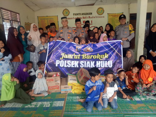Kapolsek Siak Hulu Kompol Fauzi yang diwakili Wakapolsek Siak Hulu AKP Yulius dan didampingi Panit Binmas IPDA Adi Zulfikar beserta Personel Polsek Siak Hulu langsung memberikan bantuan tersebut yang diterima oleh Pimpinan Panti Asuhan YLBMI, Nasrun Chan, beserta pengasuh dan anak-anak panti asuhan.