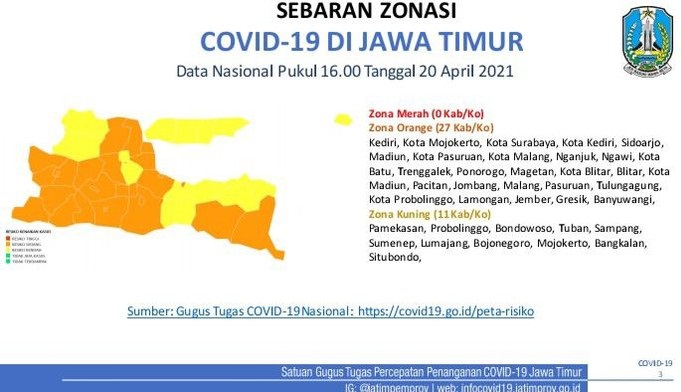 Berikut detail zonasi Covid-19 di Jatim:
