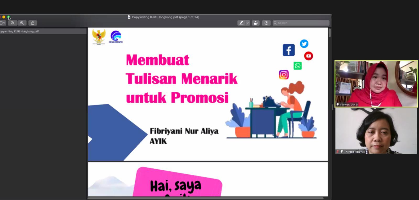 KJRI Hong Kong dan Balai Pengembangan Sumber Daya Manusia dan Penelitian (BPSDMP) Kominfo Yogyakarta memberikan pelatihan dan bekal bekal pengetahuan untuk memulai berbisnis dengan memanfaatkan media sosial.