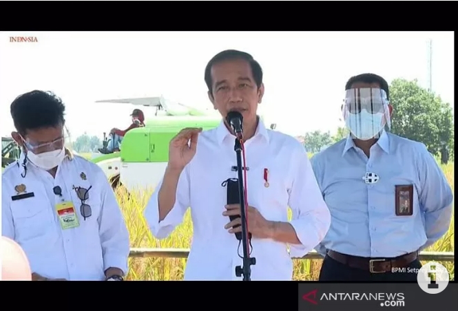 Dalam kesempatan itu Presiden Jokowi mengapresiasi hasil panen di Desa Wanasari, Indramayu, Jawa Barat, pada musim panen kali ini.