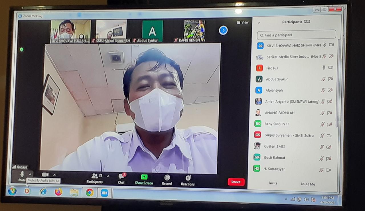 Diskusi yang diselenggarakan secara hybrid, off line dan online menghadirkan tiga pembicara, yakni Kepala Unit Direktorat Keamanan Negara Badan Intelijen Keamanan (Kanit Ditkamneg Baintelkam) Polri AKBP Julius Heru Widodo, Penanggung Jawab/Pemimpin Redaksi Kreator Jabar Makali Kumar, dan Ketua Bidang Teknologi dan Informasi SMSI Pusat Gusti Rachmat yang juga penanggung jawab Sahabat Rakyat.Com.