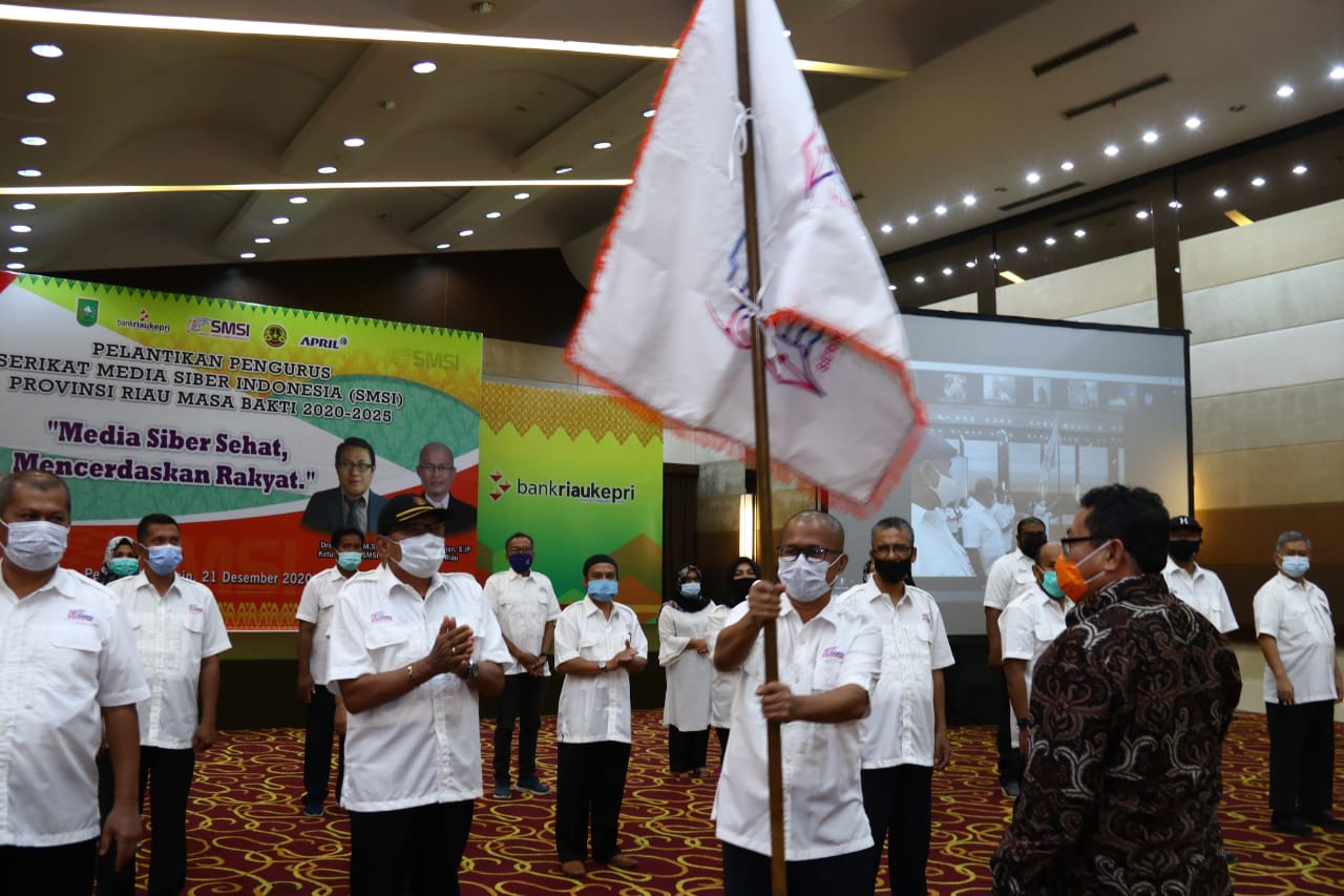 PEKANBARU – Pengurus Serikat Media Siber Indonesia (SMSI) Provinsi Riau Masa Bakti 2020-2025, resmi dilantik oleh Ketua Umum SMSI Pusat, Drs Firdaus MSi, Senin (21/12/2020), di Ballroom Menara Bank Riau Kepri.