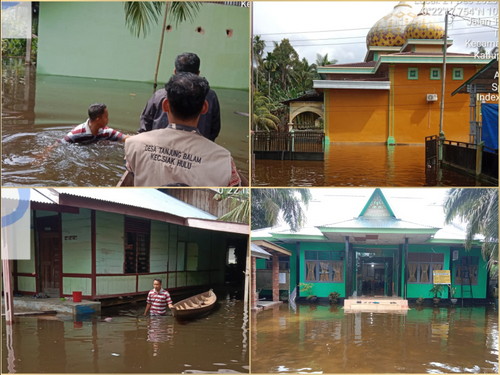 Ia juga menyebutkan, untuk tempat ibadah masjid, bagian belakang sudah dimasuki air.