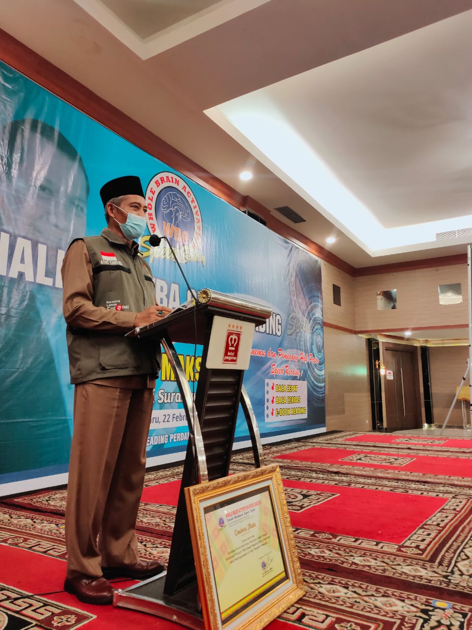 PEKANBARU – Wakil Walikota (Wawako) Pekanbaru, Ayat Cahyadi membuka kegiatan sosialisasi Whole Brain Activation (WBA) Speed Reading di Hotel Pangeran. Dalam sosialisasi ini, para peserta diajarkan teknik membaca cepat agar bisa memahami bacaan dengan kilat, Senin (22/2/2021).