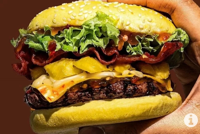 Menu ini merupakan perpaduan roti berwarna kuning, nanas honi, saus mangga habanero, irisan daging sapi renyah, lelehan mozarella dan 100 persen flame-grilled patty.