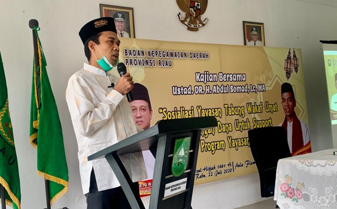 PEKANBARU – Dalam sesi sosialisasi Yayasan Tabung Wakaf Umat kali ini, Ustadz Abdul Somad (UAS) mendatangi Kantor Badan Kepegawaian Daerah (BKD) Provinsi Riau.