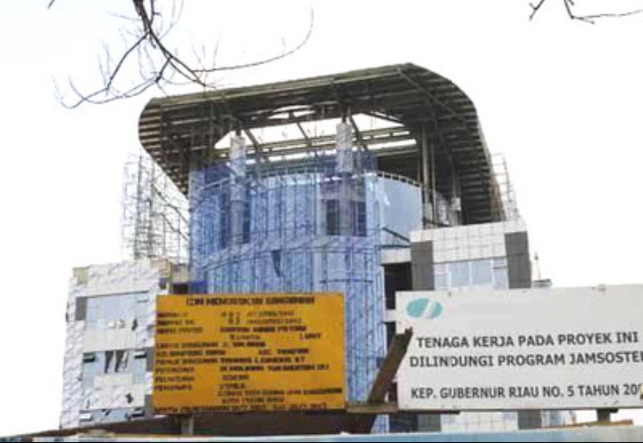 Pembangunan gedung yang melahap APBD Riau sebesar Rp200 miliar lebih itu dilaksanakan semasa SF Hariyanto menjabat Kepala Dinas PU Riau.