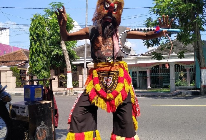 Pria 72 tahun itu masih tegap berjalan di aspal panas jalanan Kota Blitar. Memakai pakaian penari Jaranan lengkap dengan topengnya, Sugeng berjalan sambil menarik kotak pengeras suara. Gamelan Jaranan terus terdengar sepanjang langkah kaki warga asli Jodipan, Kota Malang ini.