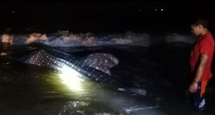 Tulungagung – Seekor hiu paus ditemukan terdampar di Pantai Bayem, Besuki, Tulungagung. Warga setempat kesulitan untuk mengevakuasi lantaran bobot hiu paus yang berat.