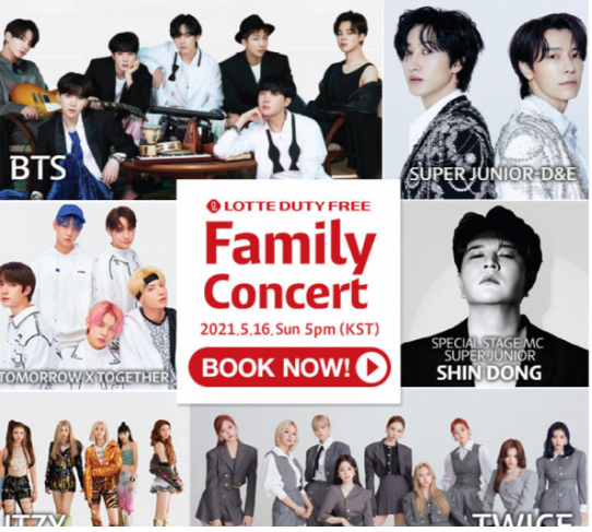 Jakarta – Sejumlah grup idola K-pop yakni Bangtan Sonyeondan (BTS), Super Junior D&E, TWICE, ITZY, TXT dan artis papan atas lainnya akan tampil dalam konser virtual yang diselenggarakan pihak Lotte Duty Free pada 16 Mei 2021.