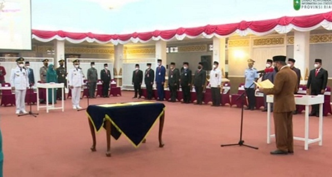 Usai pelantikan dilakukan Gubri, kedua Pj kepala daerah di Provinsi Riau juga dilanjutkan dengan pembacaan pakta integritas. Penyerahan memori jabatan oleh pejabat yang lama kepada Pj serta penyerahan SK TP PKK oleh Ketua TP PKK Riau, Misnarni Syamsuar.